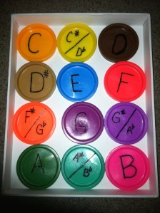 Sometimes it’s hard for students to grasp that there are 12 individual tones in music. This way they can see it in full color!